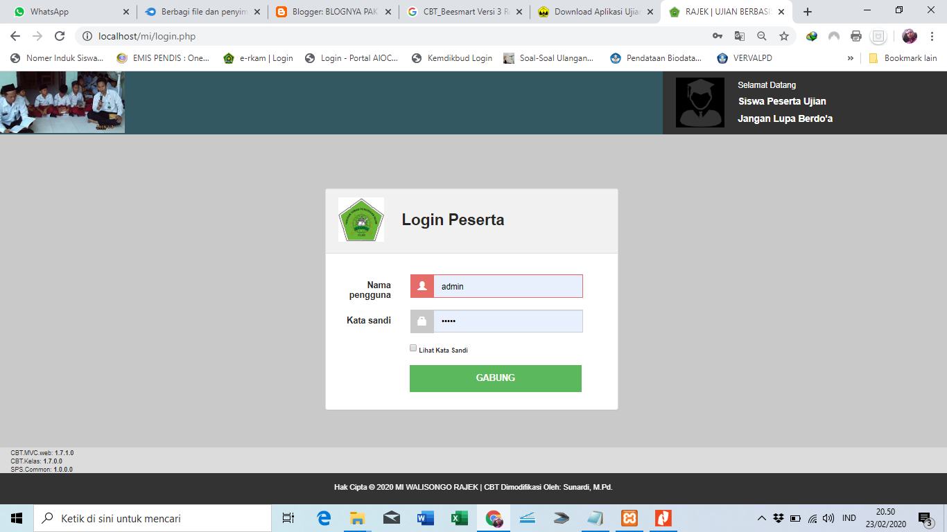 - Cetak Kartu Ujian, Daftar Hadir dan Berita Acara